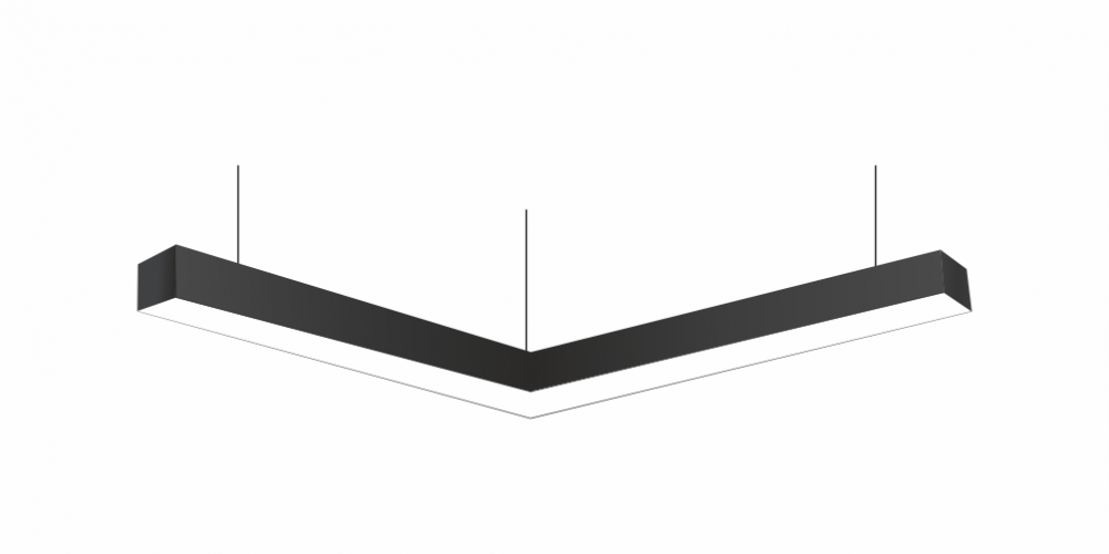 Светодиодный Угловой светильник LiNE-Pro 120гр. 750х750mm 60W 5000K черный предназначен для накладного или подвесного монтажа на тросовые подвесы. Изготовлен из сплошного сварного алюминиевого профиля в виде угла под 120 градусов. Высота установки светильника регулируется подвесом с цанговым тросовым зажимом и может варьироваться от 0,05 метра до 4 метров от основного потолка. Светильник имеет равномерную засветку по всей площади рассеивателя. Источник питания находится внутри корпуса. Торцевые заглушки входят в комплект. Возможно изготовление светильника с магистральной проводкой для соединения нескольких светильников в сплошную конструкцию.