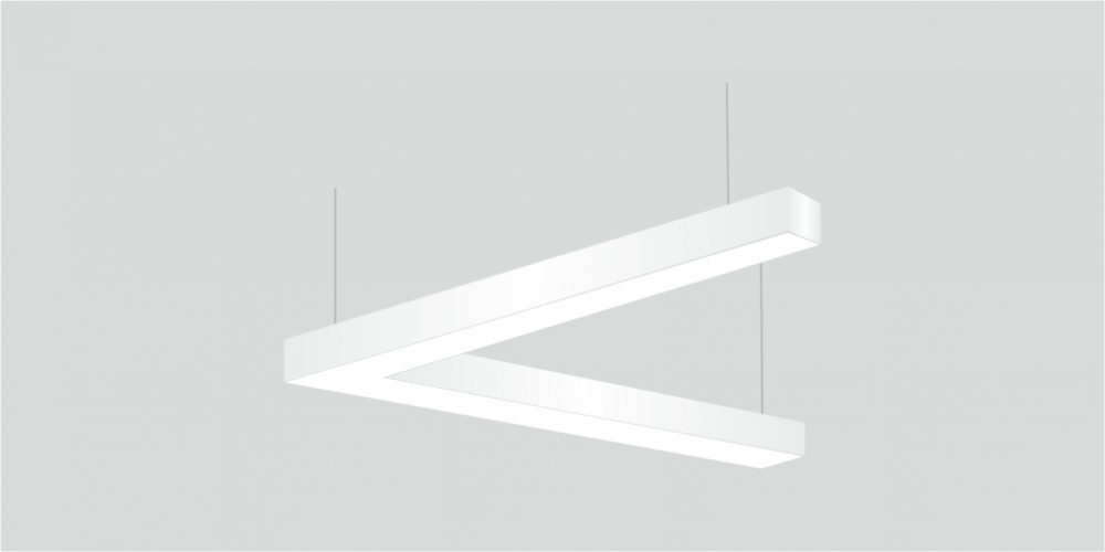 Светодиодный Угловой светильник LiNE-Pro 45гр. 1000х1000mm 80W 5000K белый предназначен для накладного или подвесного монтажа на тросовые подвесы. Изготовлен из сплошного сварного алюминиевого профиля в виде угла под 45 градусов. Высота установки светильника регулируется подвесом с цанговым тросовым зажимом и может варьироваться от 0,05 метра до 4 метров от основного потолка. Светильник имеет равномерную засветку по всей площади рассеивателя. Источник питания находится внутри корпуса. Торцевые заглушки входят в комплект. Возможно изготовление светильника с магистральной проводкой для соединения нескольких светильников в сплошную конструкцию.