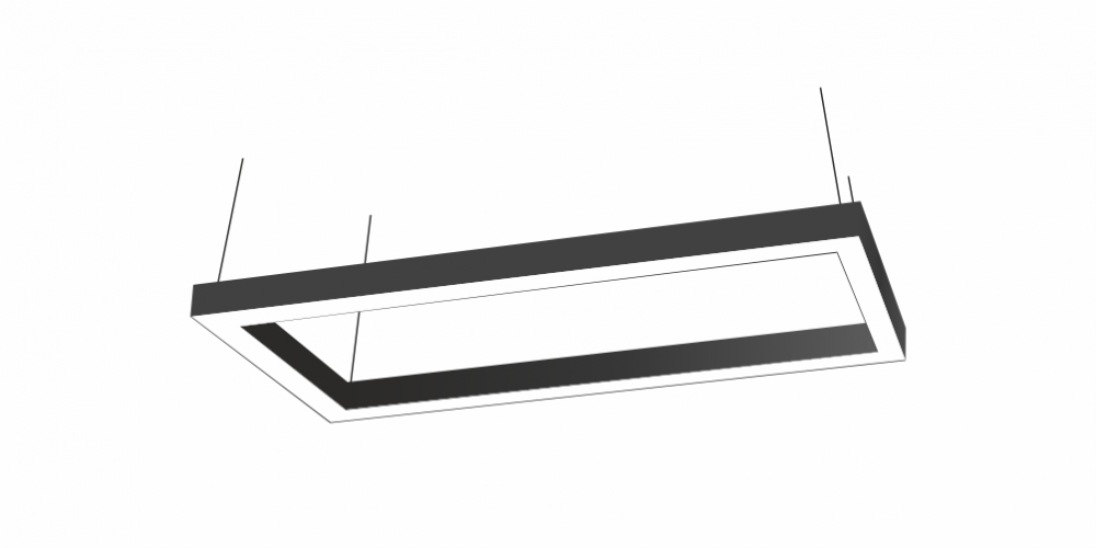 Светодиодный Прямоугольный светильник LiNE-Pro 1000х500mm 110W 6000K черный предназначен для накладного или подвесного монтажа на тросовые подвесы. Изготовлен из сплошного сварного алюминиевого профиля в виде прямоугольника. Высота установки светильника регулируется подвесом с цанговым тросовым зажимом и может варьироваться от 0,05 метра до 4 метров от основного потолка. Прямоугольный линейный светильник имеет равномерную засветку по всей площади рассеивателя. Источник питания находится внутри корпуса.