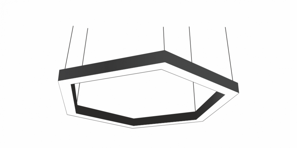 Светодиодный Шестиугольный светильник LiNE-Pro 6х250mm 30W 6000K черный предназначен для накладного или подвесного монтажа на тросовые подвесы. Изготовлен из сплошного сварного алюминиевого профиля в виде шестиугольника. Высота установки светильника регулируется подвесом с цанговым тросовым зажимом и может варьироваться от 0,05 метра до 4 метров от основного потолка. Шестиугольный линейный светильник имеет равномерную засветку по всей площади рассеивателя. Источник питания находится внутри корпуса.