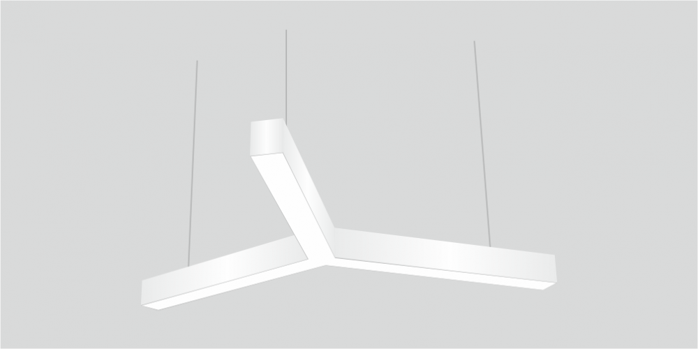 Светодиодный Лучевой светильник LiNE-Pro 3х500mm 30W 5000K белый предназначен для накладного или подвесного монтажа на тросовые подвесы. Изготовлен из сплошного сварного алюминиевого профиля в виде буквы «Y». Высота установки светильника регулируется подвесом с цанговым тросовым зажимом и может варьироваться от 0,05 метра до 4 метров от основного потолка. Светильник имеет равномерную засветку по всей площади рассеивателя. Источник питания находится внутри корпуса. Торцевые заглушки входят в комплект. Возможно изготовление светильника с магистральной проводкой для соединения нескольких светильников в сплошную конструкцию.