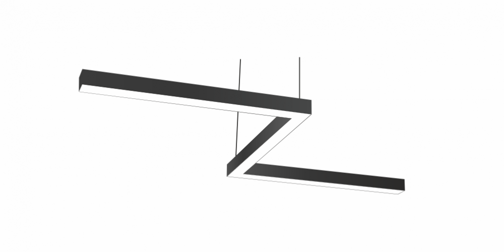 Фигурный светодиодный Светильник Зигзаг LiNE-Pro 3х500mm 30W 3000K черный предназначен для накладного или подвесного монтажа на тросовые подвесы. Изготовлен из сплошного сварного алюминиевого профиля в виде зигзага. Высота установки светильника регулируется подвесом с цанговым тросовым зажимом и может варьироваться от 0,05 метра до 4 метров от основного потолка. Светильник Зигзаг имеет равномерную засветку по всей площади рассеивателя. Источник питания находится внутри корпуса. Торцевые заглушки входят в комплект. Возможно изготовление светильника с магистральной проводкой для соединения нескольких светильников в сплошную конструкцию
