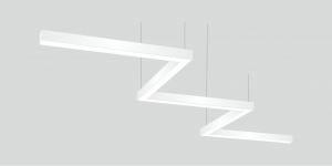 Фигурный светодиодный Светильник Зигзаг LiNE-Pro 5х500mm 90W 4000K белый предназначен для накладного или подвесного монтажа на тросовые подвесы. Изготовлен из сплошного сварного алюминиевого профиля в виде зигзага. Высота установки светильника регулируется подвесом с цанговым тросовым зажимом и может варьироваться от 0,05 метра до 4 метров от основного потолка. Светильник Зигзаг имеет равномерную засветку по всей площади рассеивателя. Источник питания находится внутри корпуса. Торцевые заглушки входят в комплект. Возможно изготовление светильника с магистральной проводкой для соединения нескольких светильников в сплошную конструкцию