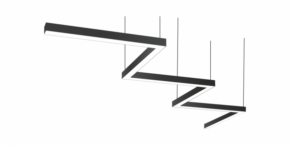 Фигурный светодиодный Светильник Зигзаг LiNE-Pro 6х500mm 120W 4000K черный предназначен для накладного или подвесного монтажа на тросовые подвесы. Изготовлен из сплошного сварного алюминиевого профиля в виде зигзага. Высота установки светильника регулируется подвесом с цанговым тросовым зажимом и может варьироваться от 0,05 метра до 4 метров от основного потолка. Светильник Зигзаг имеет равномерную засветку по всей площади рассеивателя. Источник питания находится внутри корпуса. Торцевые заглушки входят в комплект. Возможно изготовление светильника с магистральной проводкой для соединения нескольких светильников в сплошную конструкцию