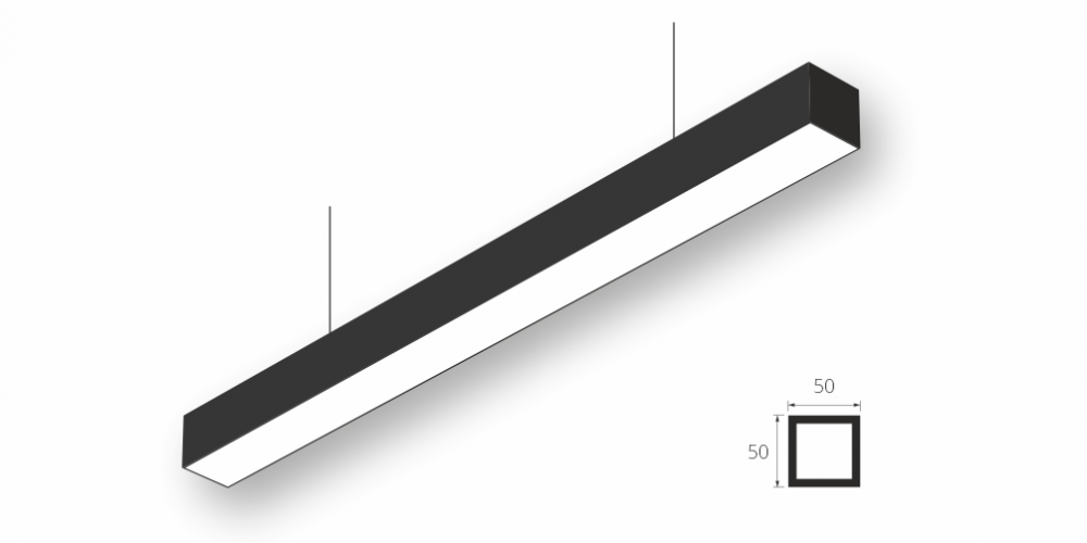 Линейный светодиодный Подвесной светильник LiNE-Pro 50x50 500mm 8W 3000K Черный предназначен для подвесного монтажа на тросовые подвесы. Изготовлен из алюминиевого профиля длиной 500 мм, мощностью 8 Вт c цветовой температурой 3000 K, цвет корпуса Черный. Высота установки светильника регулируется подвесом с цанговым тросовым зажимом и может варьироваться от 0,05 метра до 4 метров от основного потолка. Линейный светильник может использоваться для реечных потолков. Светильник имеет равномерную засветку по всей площади рассеивателя. Источник питания находится внутри корпуса. Торцевые заглушки входят в комплект.