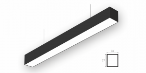Линейный светодиодный Подвесной светильник LiNE-Pro 77x74 1000mm 20W 3000K Черный предназначен для подвесного монтажа на тросовые подвесы. Изготовлен из алюминиевого профиля длиной 1000 мм, мощностью 20 Вт c цветовой температурой 3000 K, цвет корпуса Черный. Высота установки светильника регулируется подвесом с цанговым тросовым зажимом и может варьироваться от 0,05 метра до 4 метров от основного потолка. Линейный светильник может использоваться для реечных потолков. Светильник имеет равномерную засветку по всей площади рассеивателя. Источник питания находится внутри корпуса. Торцевые заглушки входят в комплект.