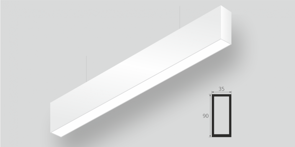 Линейный светодиодный Подвесной светильник LiNE-Pro 90x35 500mm 25W 6000K Белый предназначен для подвесного монтажа на тросовые подвесы. Изготовлен из алюминиевого профиля длиной 500 мм, мощностью 25 Вт c цветовой температурой 6000 K, цвет корпуса Белый. Высота установки светильника регулируется подвесом с цанговым тросовым зажимом и может варьироваться от 0,05 метра до 4 метров от основного потолка. Линейный светильник может использоваться для реечных потолков. Светильник имеет равномерную засветку по всей площади рассеивателя. Источник питания находится внутри корпуса. Торцевые заглушки входят в комплект.