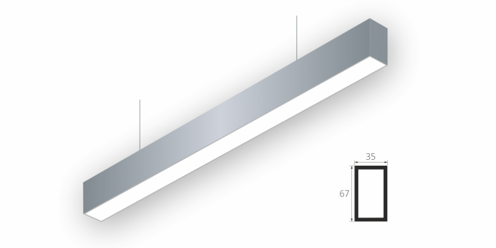Линейный модульный светодиодный Подвесной светильник LiNE-Pro 67x35 1250mm 38W 5000K Серый предназначен для подвесного монтажа на тросовые подвесы. Изготовлен из алюминиевого профиля длиной 1250 мм, мощностью 38 Вт c цветовой температурой 5000 K, цвет корпуса Серый. Светильники соединяются в сплошную линию с помощью комплекта линейного соединения и сплошной магистральной проводки. Светильник имеет равномерную засветку по всей площади рассеивателя. Источник питания находится внутри корпуса.