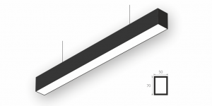Линейный модульный светодиодный Подвесной светильник LiNE-Pro 70x50 1750mm 105W 3000K Черный предназначен для подвесного монтажа на тросовые подвесы. Изготовлен из алюминиевого профиля длиной 1750 мм, мощностью 105 Вт c цветовой температурой 3000 K, цвет корпуса Черный. Светильники соединяются в сплошную линию с помощью комплекта линейного соединения и сплошной магистральной проводки. Светильник имеет равномерную засветку по всей площади рассеивателя. Источник питания находится внутри корпуса.